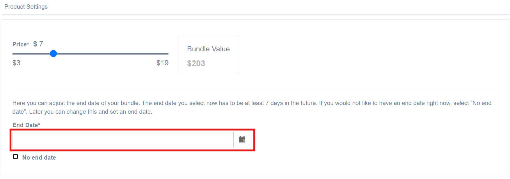 - Once you've opened the bundle you want to change you can update the end date of your bundle using the end date field.